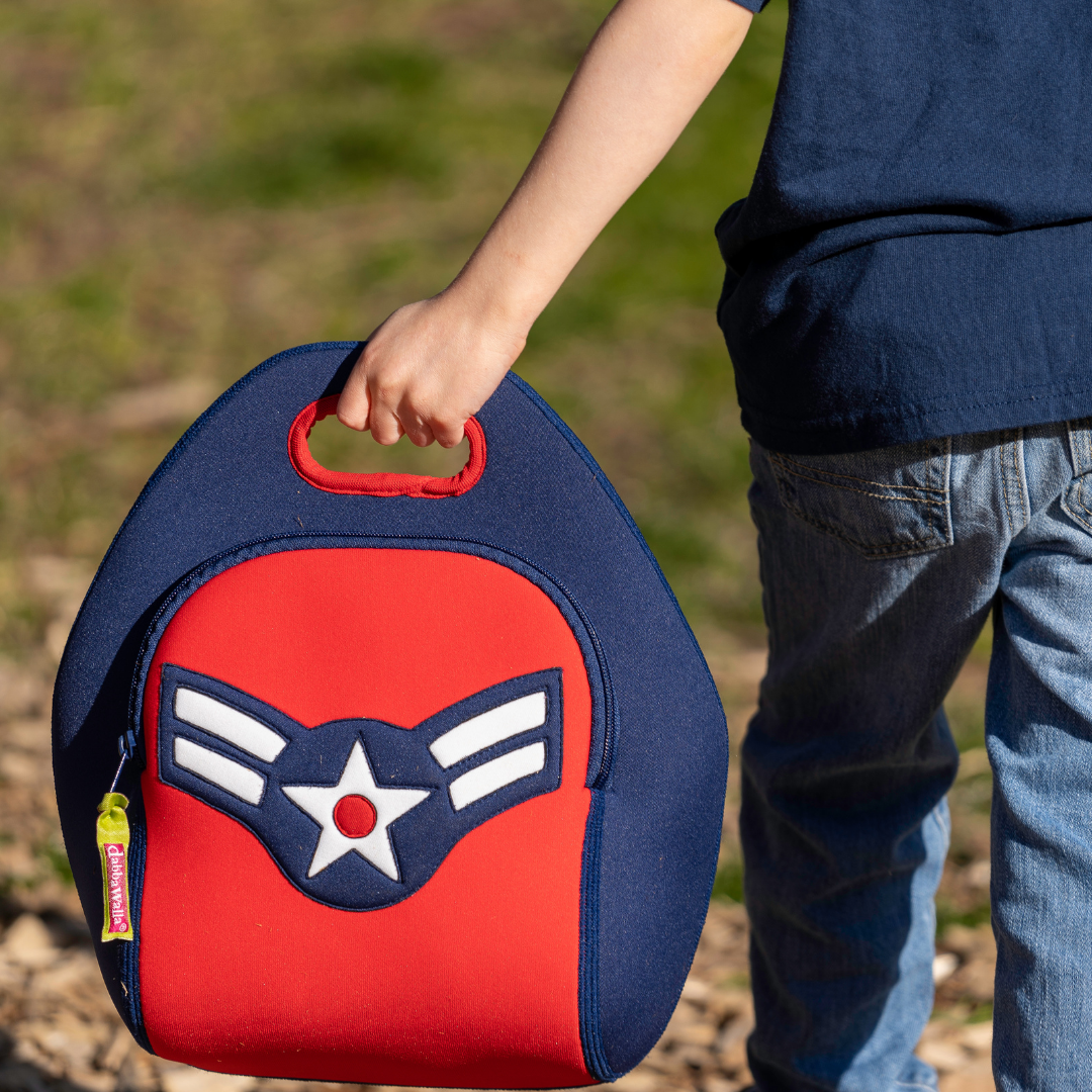 Flexible, strong, and insulating, the Dabbawalla lunch bag is perfect for carrying lunch to school, work, or for use as a stroller bag. Stands upright for easy packing. Two inside mesh pockets organize a water bottle & ice pack. Each bag is individually crafted from a sustainable foam textile that is 100% toxic-free and machine washable. Inside Dimensions: 9"h x 10"w x 6"d.